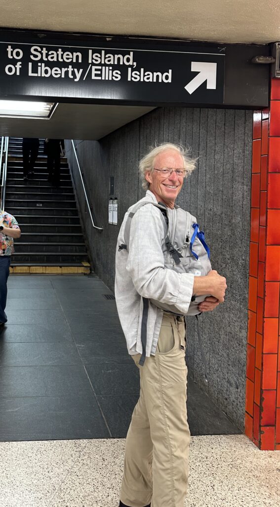 We took the airport train to the subway. After about an hour on the subway we exited and walked 10 minutes to the Staten Island Ferry Whitehall terminal. We were so excited with how quickly and easily it all went because we were on the Staten Island Ferry at sunset and got to see the Statue of Liberty with the setting sun. After about 25 minutes we got to Staten Island where we got off and walked right back onto the return ferry. It was significantly more crowded than the trip to the island.