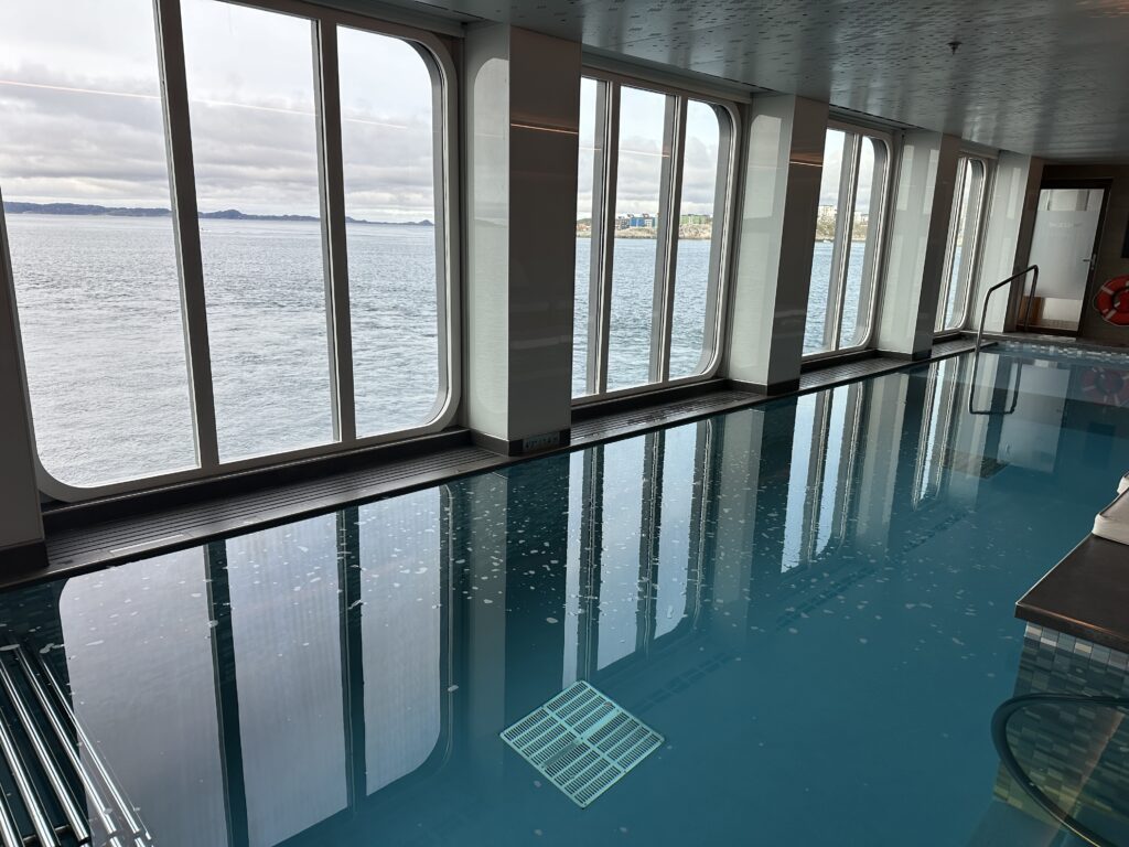 I went back to the ship right after the show and Tibor walked around. He was quite cold when he returned and I suggested he give the spa a try- he did and said he feels nice and warm now. The spa has a heated pool, sauna, steam room, a snow grotto and a hot tub. I had tried the heated pool a few days ago and it was nice and you couldn’t beat the view.
