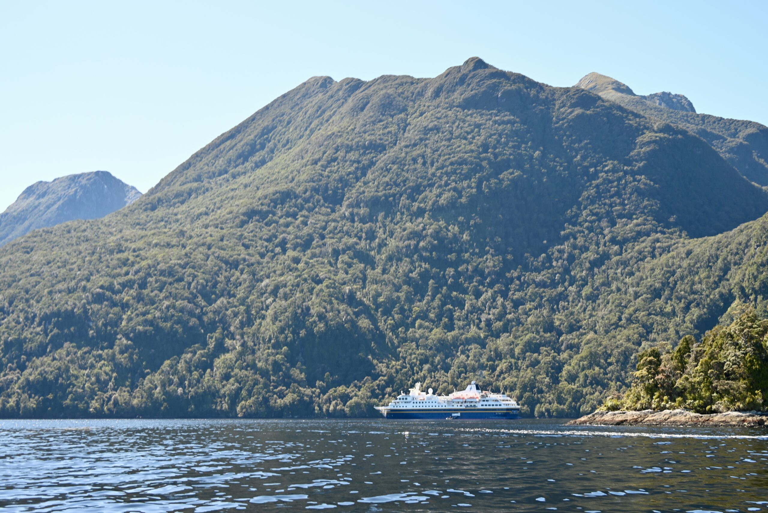 After a short rest, we were ready for our afternoon excursion. This was a zodiac cruise in Facile Harbour followed by a landing. The landing was at Pigeon Island, the island where Richard Henry lived. He was a self-taught naturalist, and the first caretaker of Resolution Island, a crucial role in establishing NZ’s first island wildlife sanctuary. He famously relocated hundreds of endangered birds to offshore havens using innovative, hands-on methods laying groundwork for modern relocation conservation. He was unknown while alive yet is now widely known as the 19th century New Zealand conservationist because of his amazing, detailed reports and maps that were used by future conservationists.