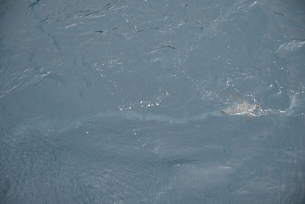 After returning and having lunch, the ship cruised down the lee side of Macquarie Island and we enjoyed the views and the swimming/porpoising penguins. It was especially interesting to see the penguins swimming under the water- the water was so clear you could see them from the ship.