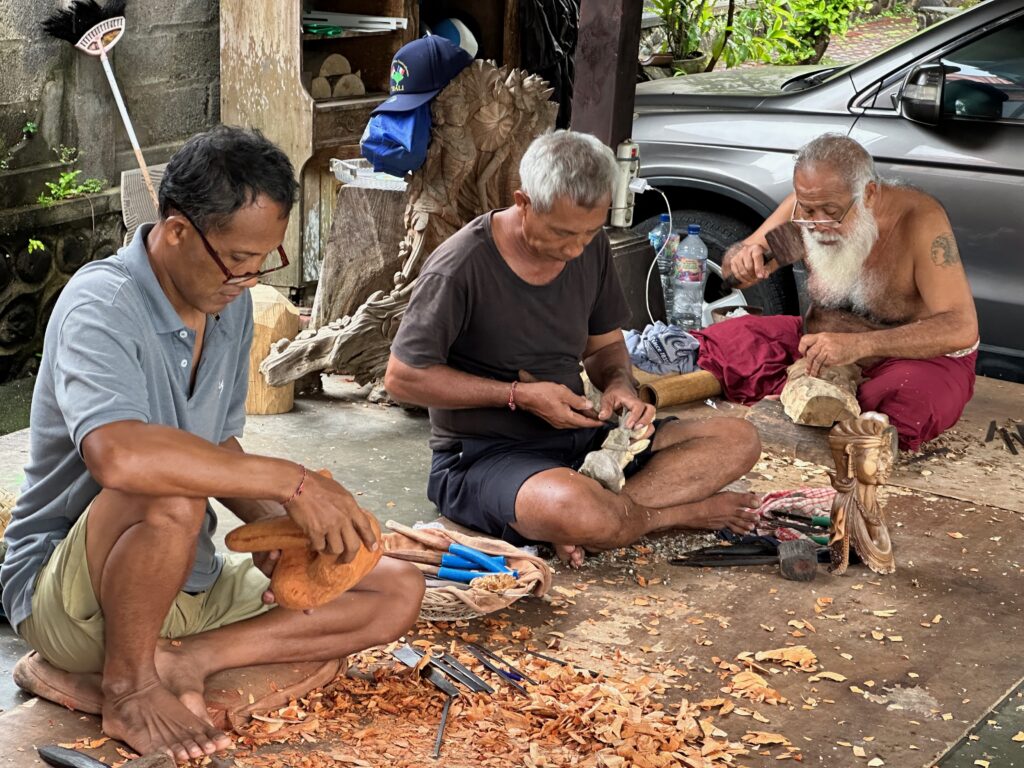 Wood carvers- can’t believe they sit on the hard concrete and hammer sharp objects near their feet