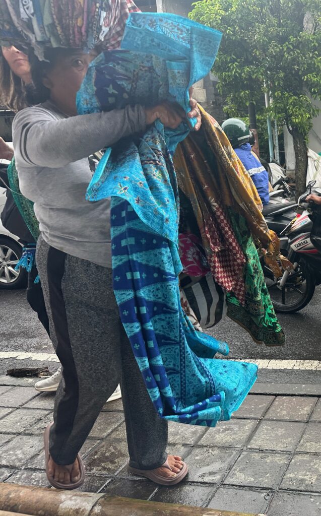 Jennifer and I decided to go on the “Balinese Arts & Crafts” excursion so we could enjoy some of the fabric craft. We ended up on separate busses going to the same places and we had fun when we got back showing off all the goodies we had purchased.
