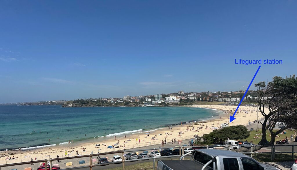 The blue-line route went past Bondi Beach. I thought I might be able to see penguins on the beach but not a chance- it’s very hot 85+ degrees during the day and the beach was full of people. No self-respecting penguin would be out and about then.