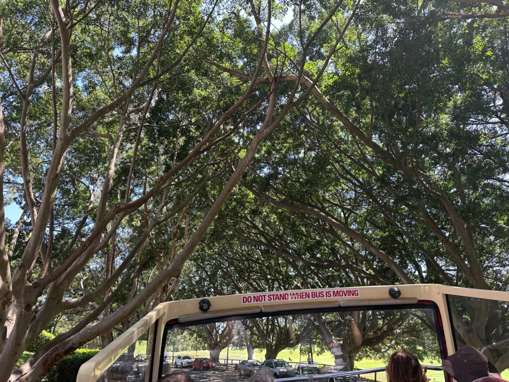 The bus tours have a sound system and a prerecorded talk that matches the route. At a couple of points, it warned of low hanging branches and by golly I had to duck to avoid some! I did certainly enjoy the shade under the trees as the sun is burning hot. I purchased a sun hat and am using the wonderful sunscreen(Super Goop) Monica got me to protect against the powerful sunlight.