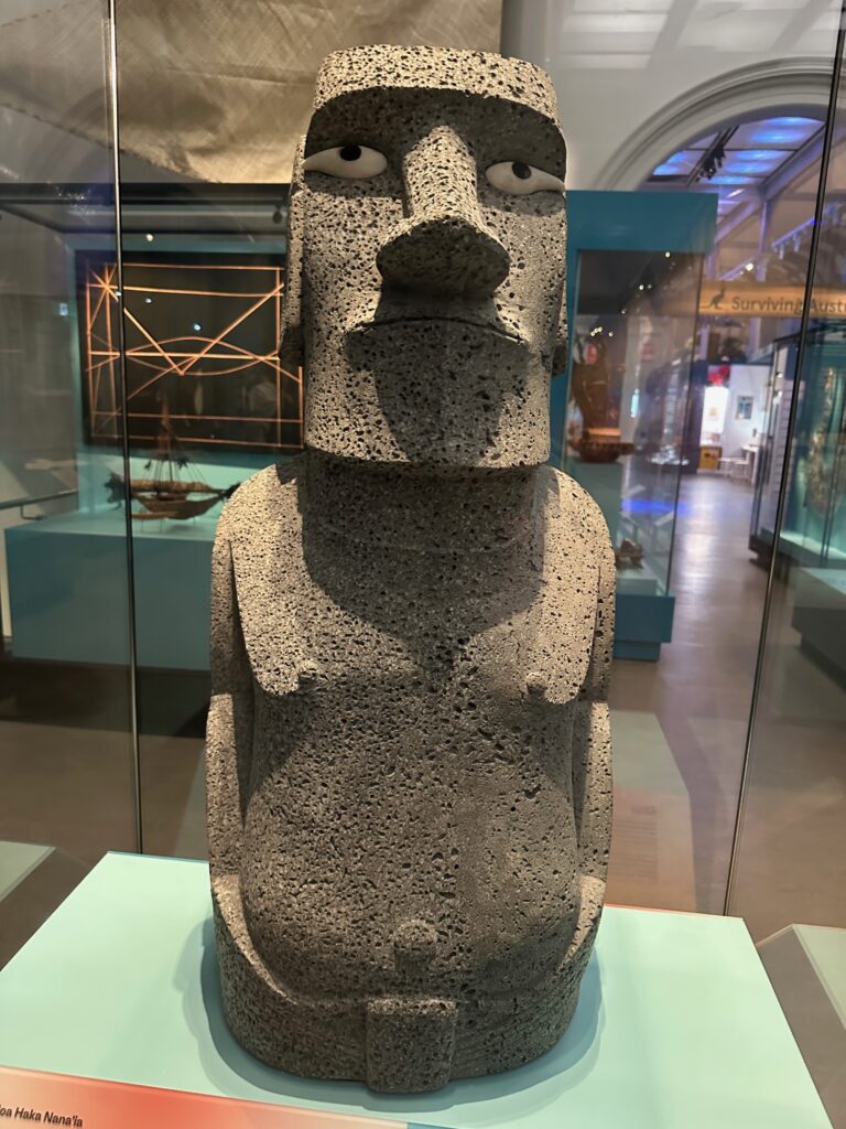 On the way to the bird exhibit I ran across a Moai. It was a little flash of the past- we saw many, many Moai a few weeks ago when we were on Easter Island. This one was not a relic but was carved by a master Moai carver especially for the Australia Museum.