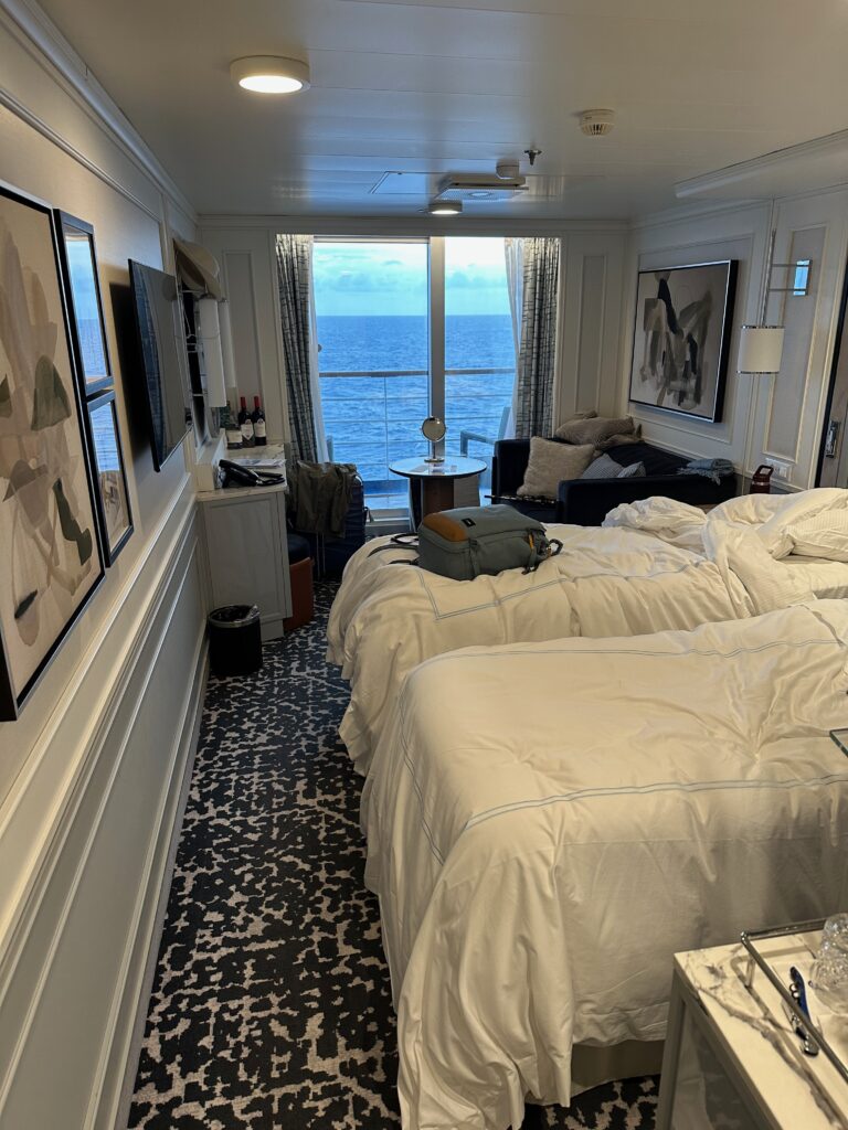 Our room was ready shortly thereafter and all our luggage arrived. We didn’t unpack yet as they need to change the bed- it was setup as one big bed but we want two twin beds.